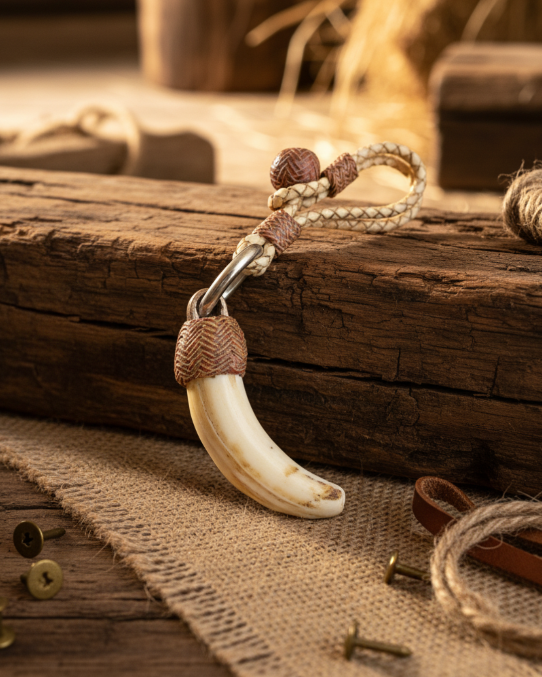Chaveiro de Lonca de Carneiro com Dente de Javali